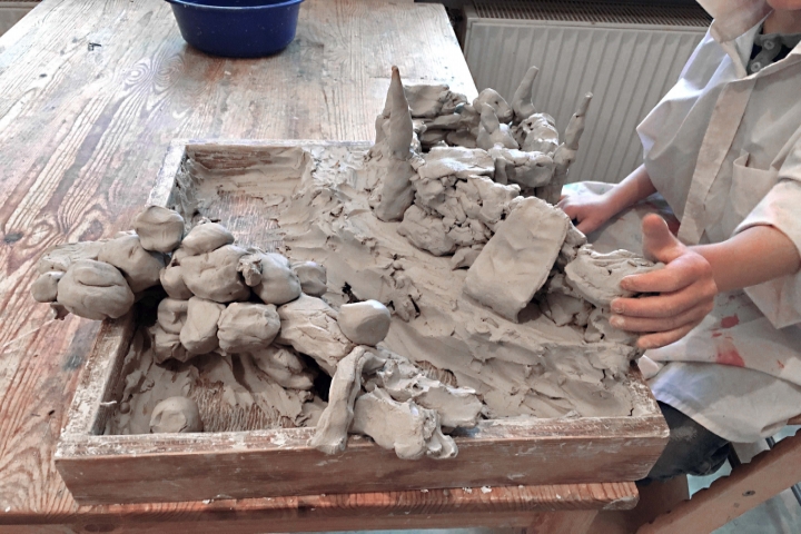 Die Arbeit am Tonfeld ist für Kinder und Erwachsene geeignet.